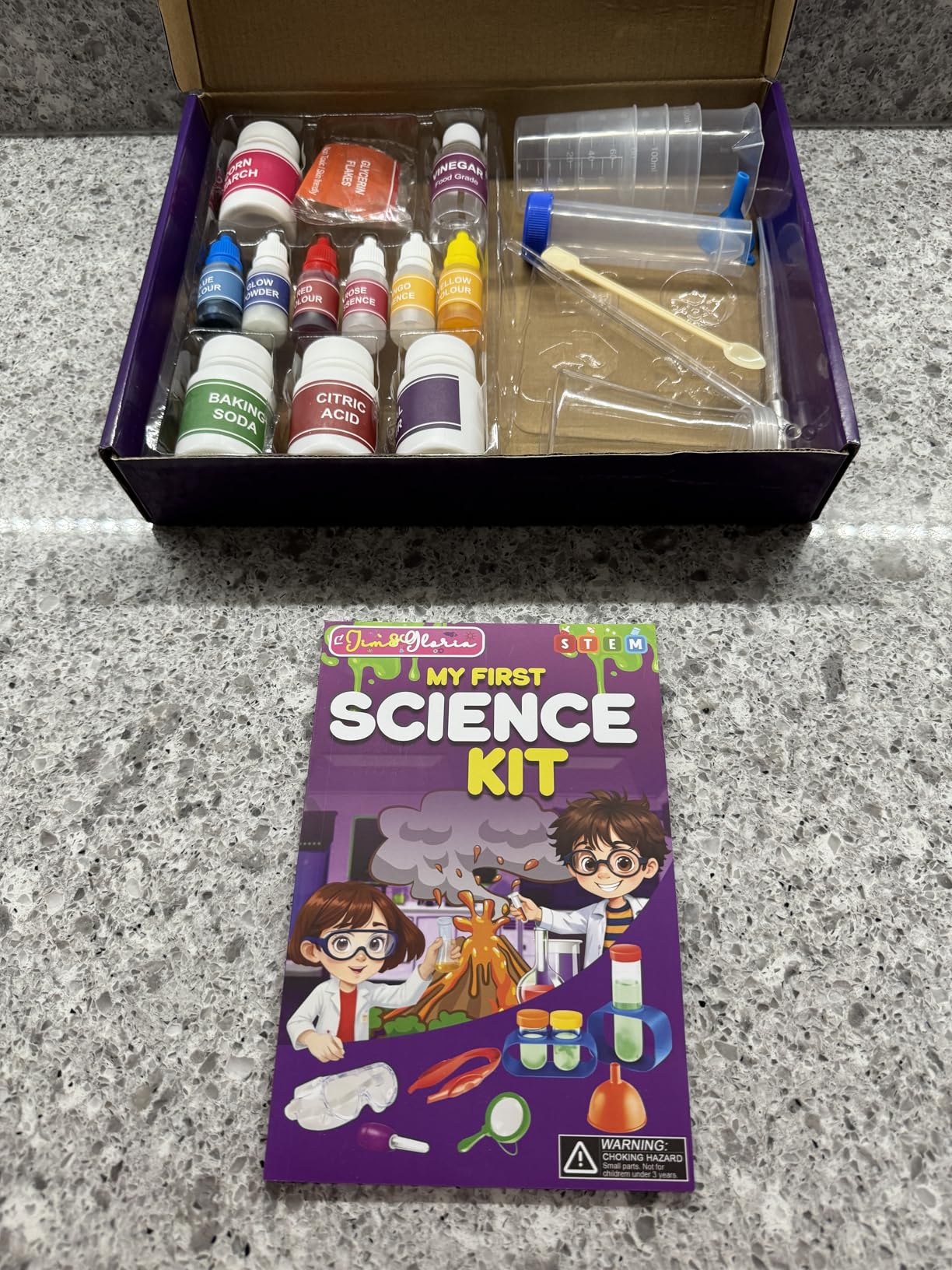 This science and chemistry experiment kit for kids contains. A variety of items and equipment for exciting, interesting and fun experiments that lead my kids to discover how many things work in the real world. The kit is accompanied by a book filled with recipes and explicit experiments and describes the reaction. The instructions are simple. The ingredients it comes with are insufficient, for example to do the volcano experiment I had to add ingredients that I had at home because it was not enough. It is a kit that brings very cute and tender tools so that they are easily manipulated by small children, Ideal for school projects, home activities or as an educational gift.